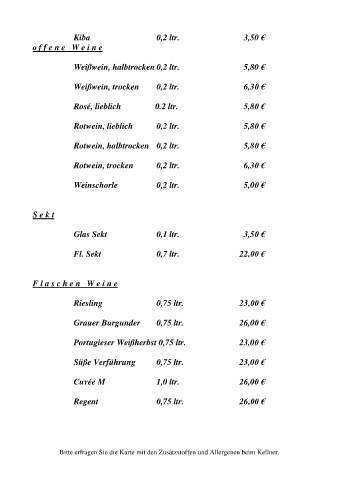 Bitte erfragen Sie die Karte mit den Zusatzstoffen und Allergenen beim Kellner.