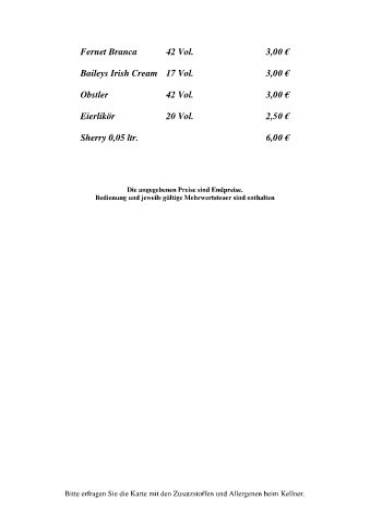 Bitte erfragen Sie die Karte mit den Zusatzstoffen und Allergenen beim Kellner.
