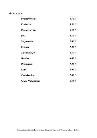 Bitte erfragen Sie die Karte mit den Zusatzstoffen und Allergenen beim Kellner.